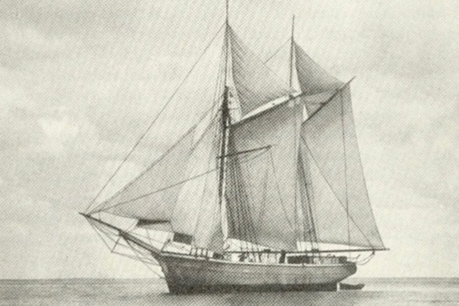 2. ”Hermes”, en Bergkvaraskuta med satta segel och besättningen på däck.